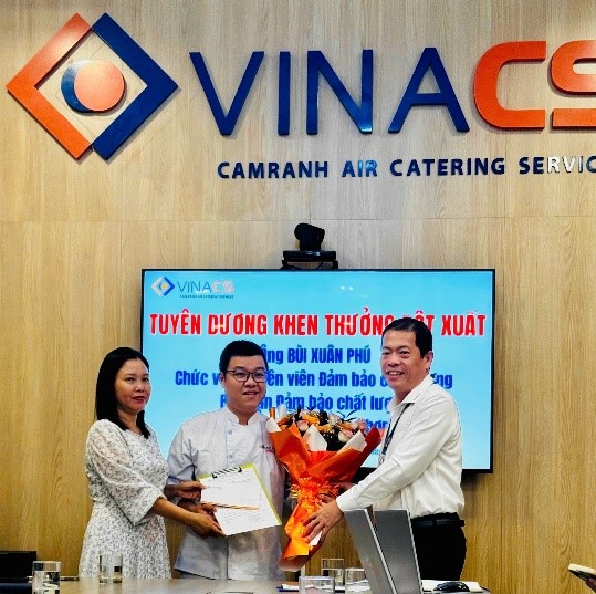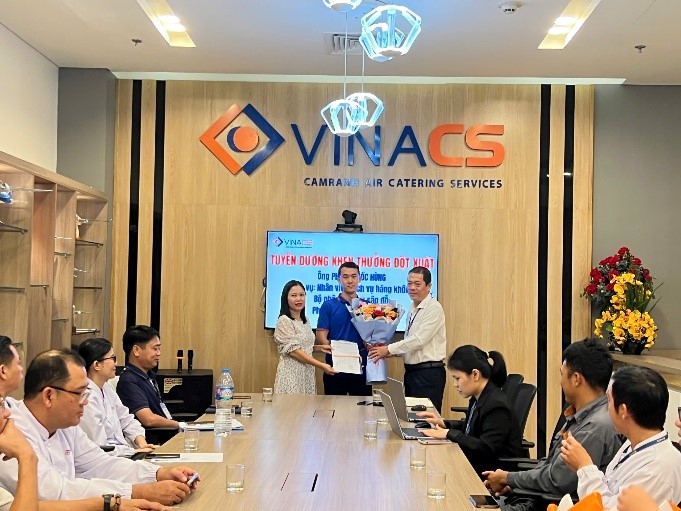 Trong dịp này, VINACS đã tuyên dương và khen thưởng anh Bùi Xuân Phú (Bộ phận Đảm bảo chất lượng, phòng Kinh tế tổng hợp) và anh Phùng Quốc Hùng (Bộ phận Dịch vụ sân đỗ, Phòng Dịch vụ khai thác) vì hành động dũng cảm cứu người trong lũ tại khu vực sinh sống.