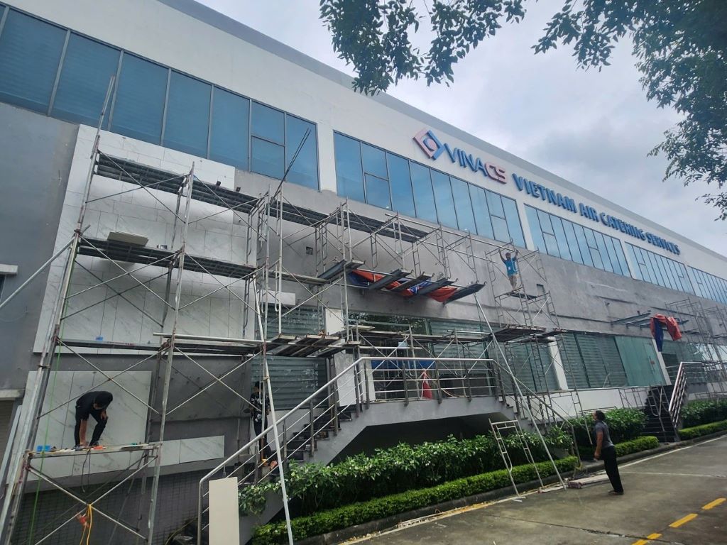 Hình ảnh sửa chữa mặt ngoài công trình tại Nội Bài